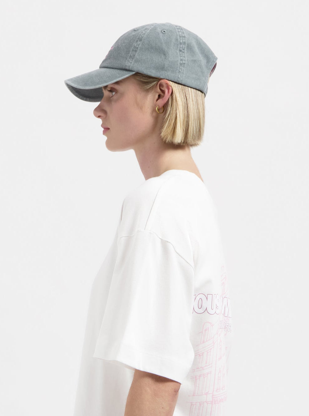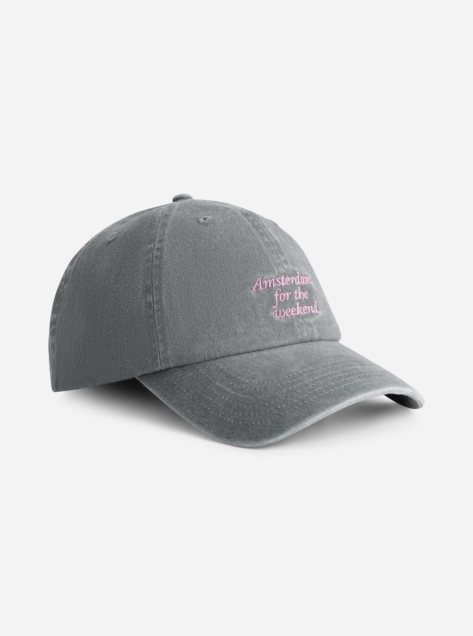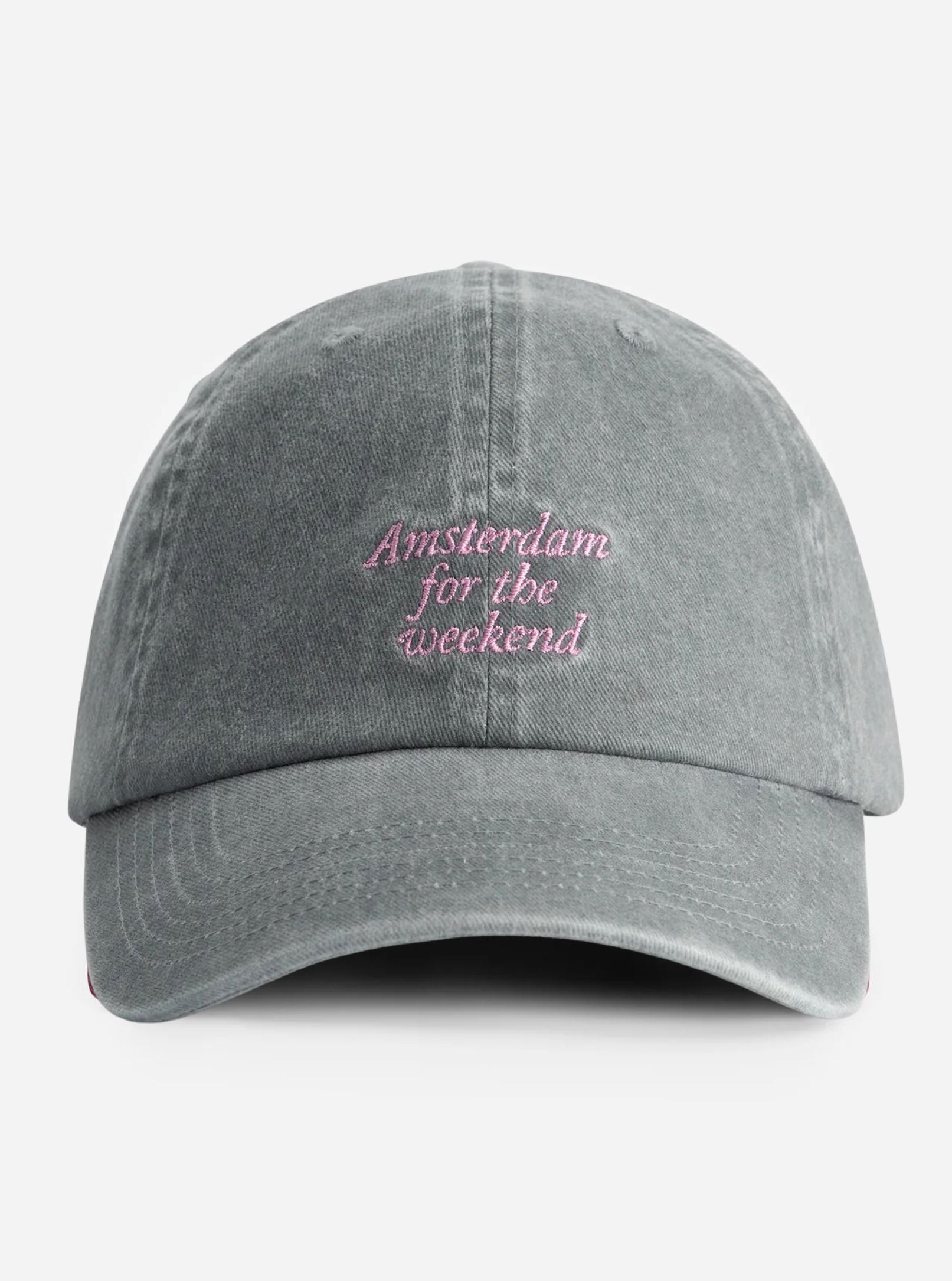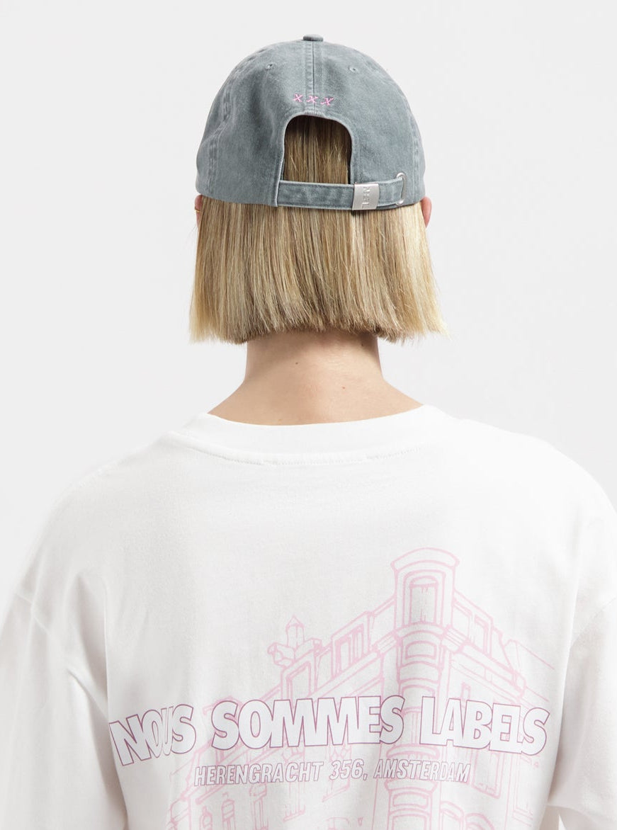 Grey cap with pink embroidery 'Amsterdam for the Weekend' by Nous Sommes Labels