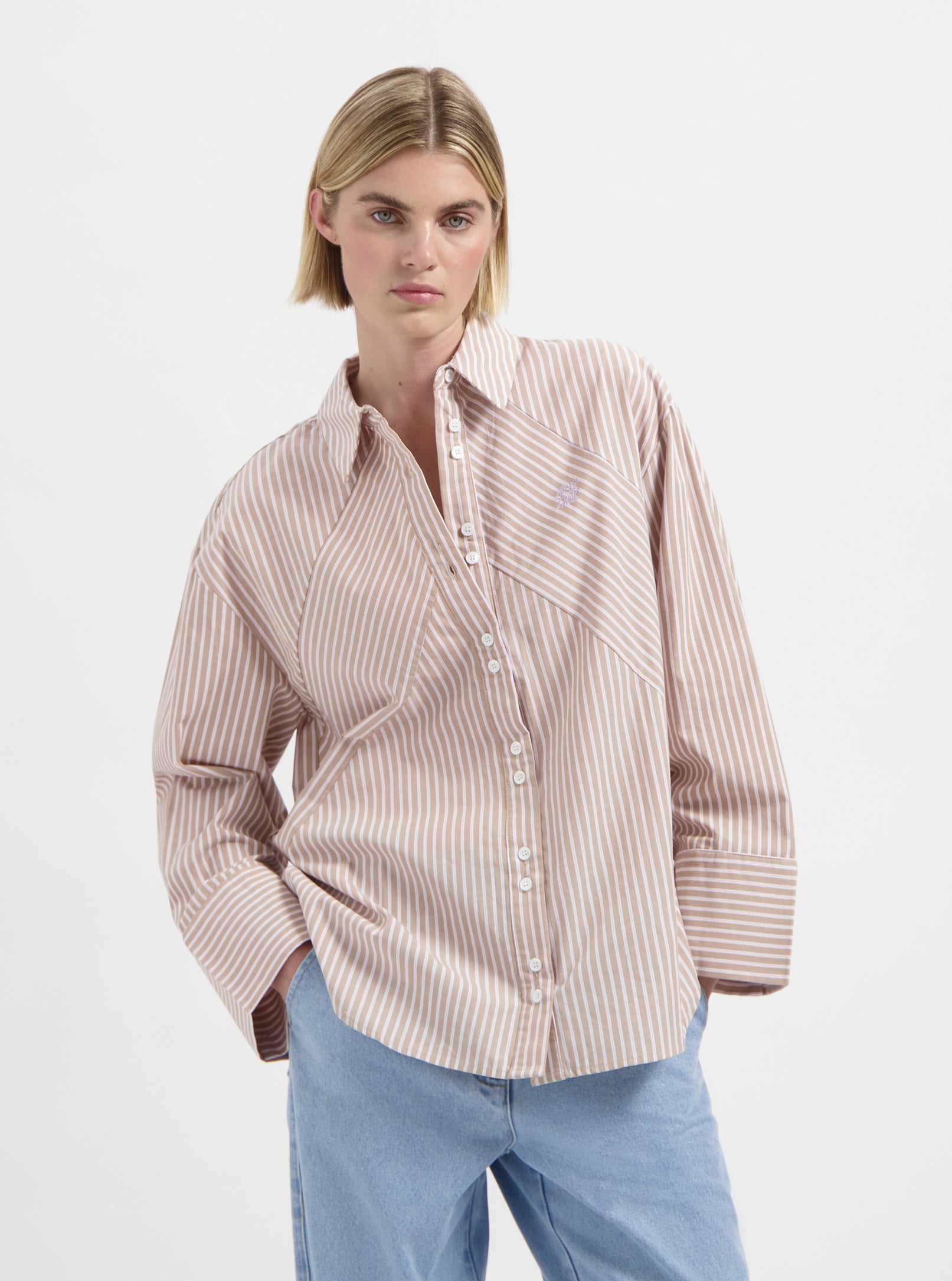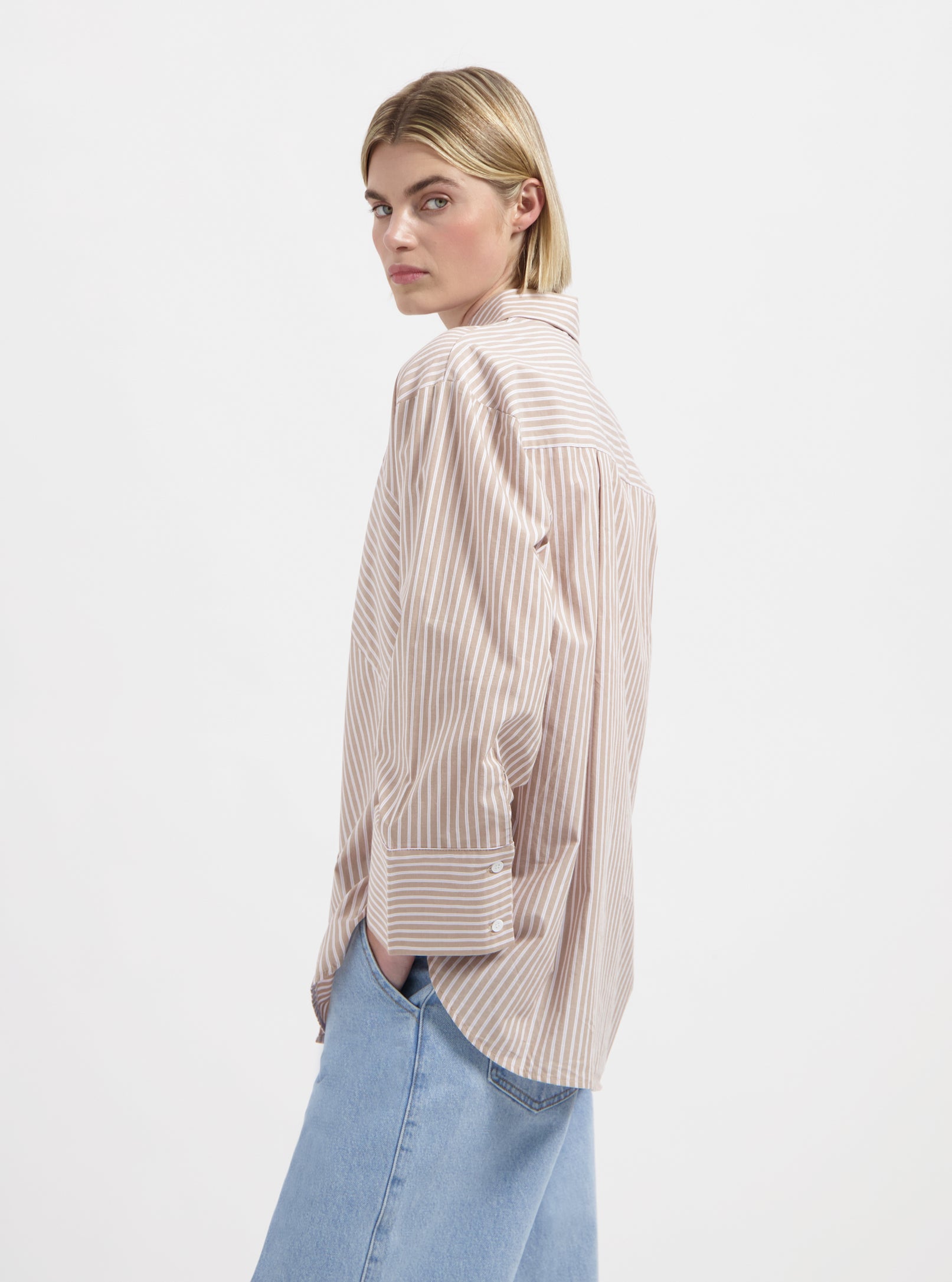 Bailey Oversized Shirt - Beige Pink Stripe