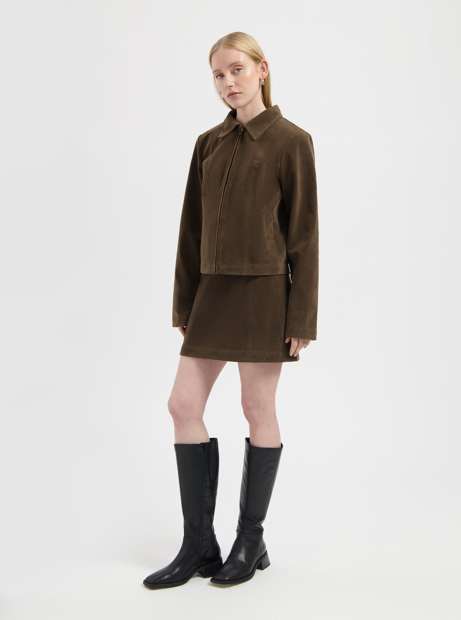 Marie Faux Suede Jacket - Brown