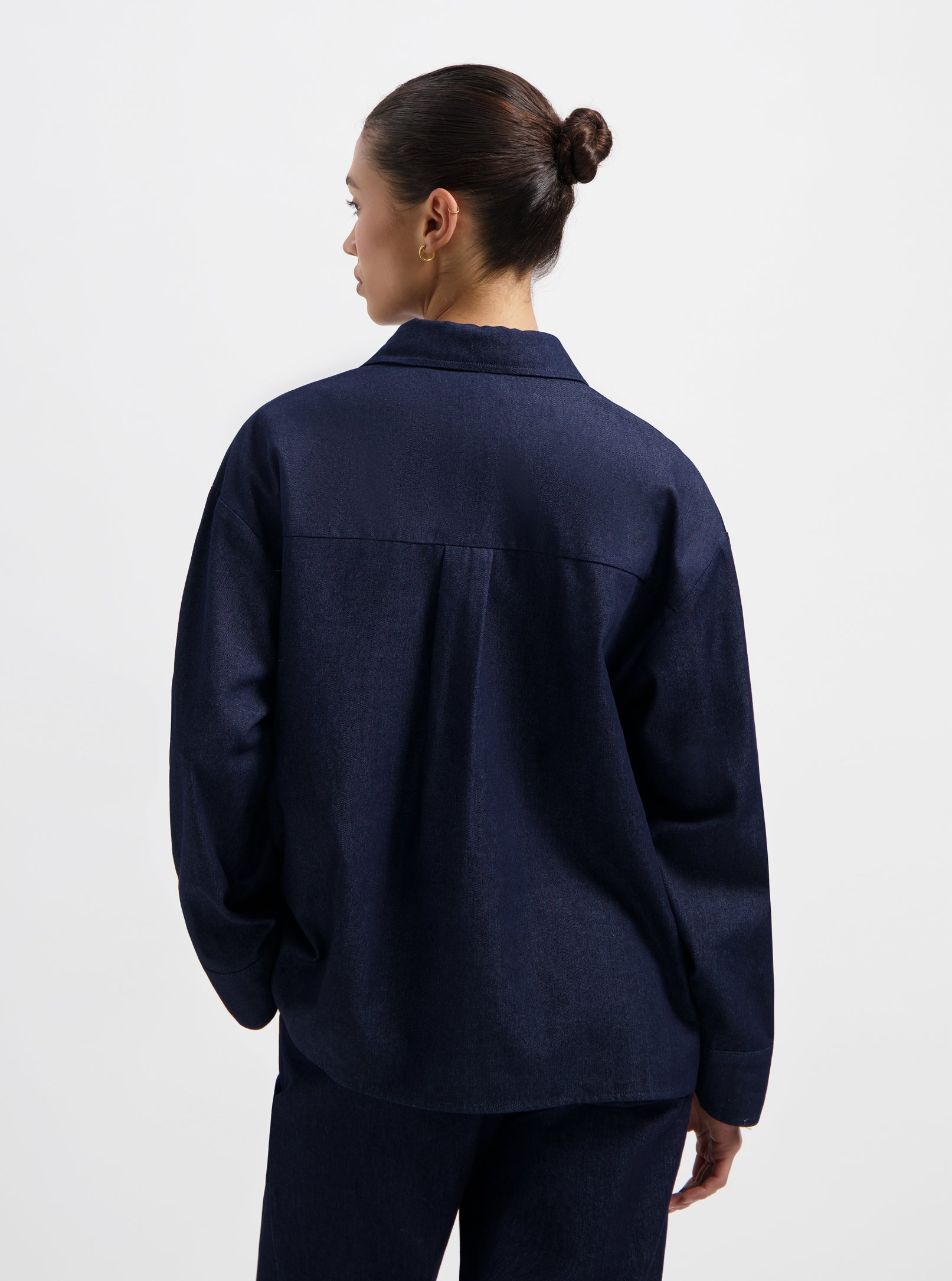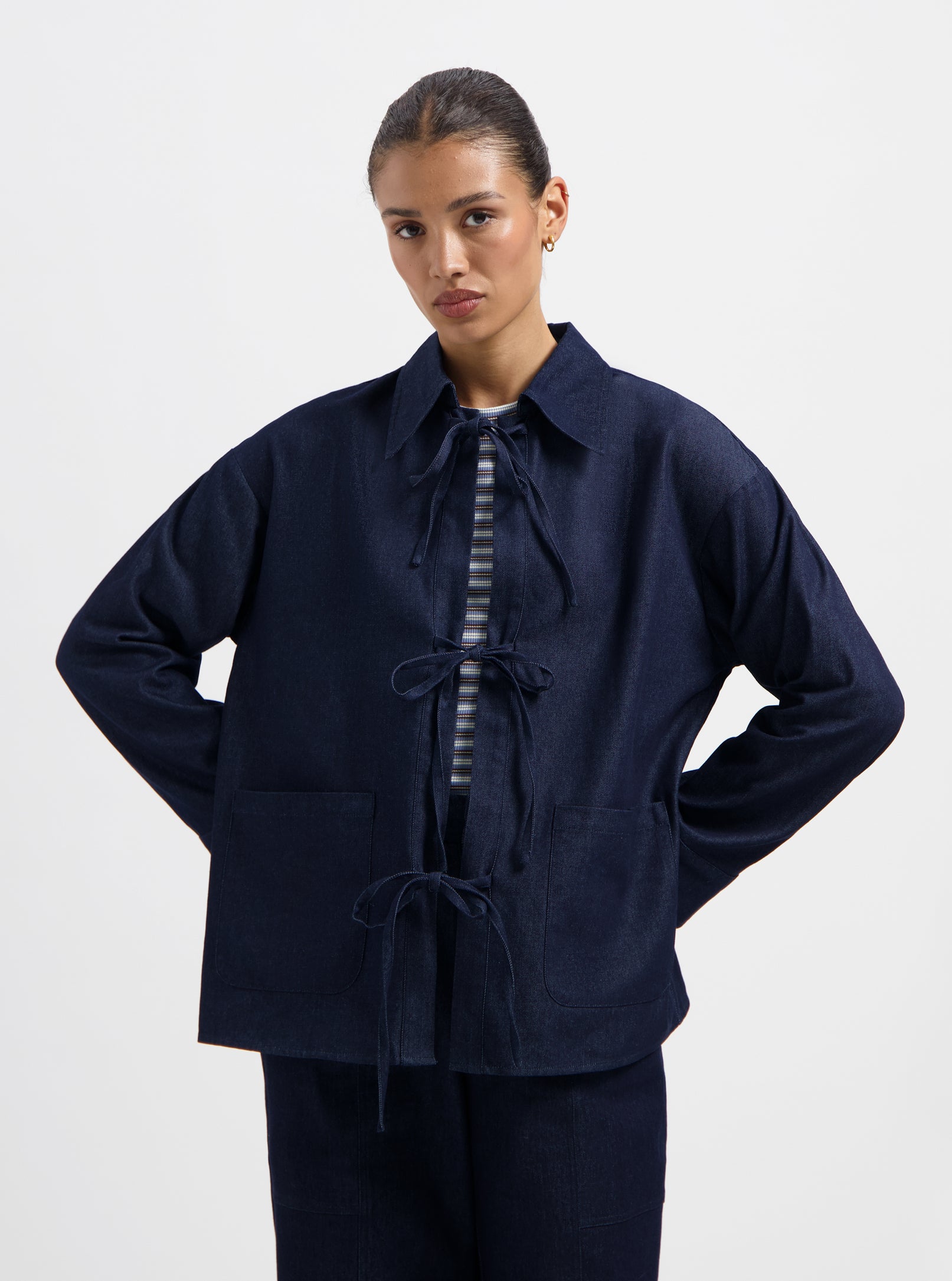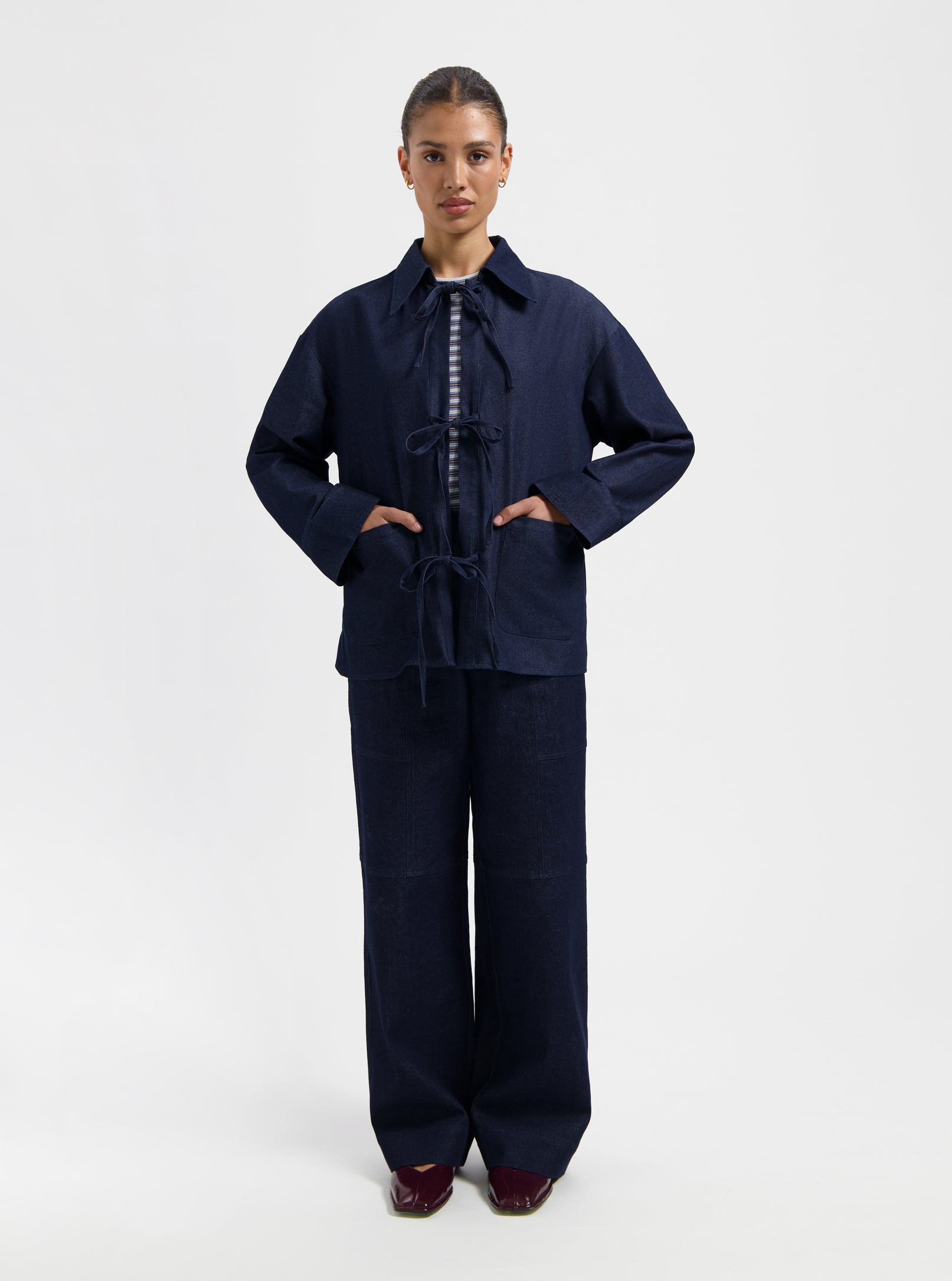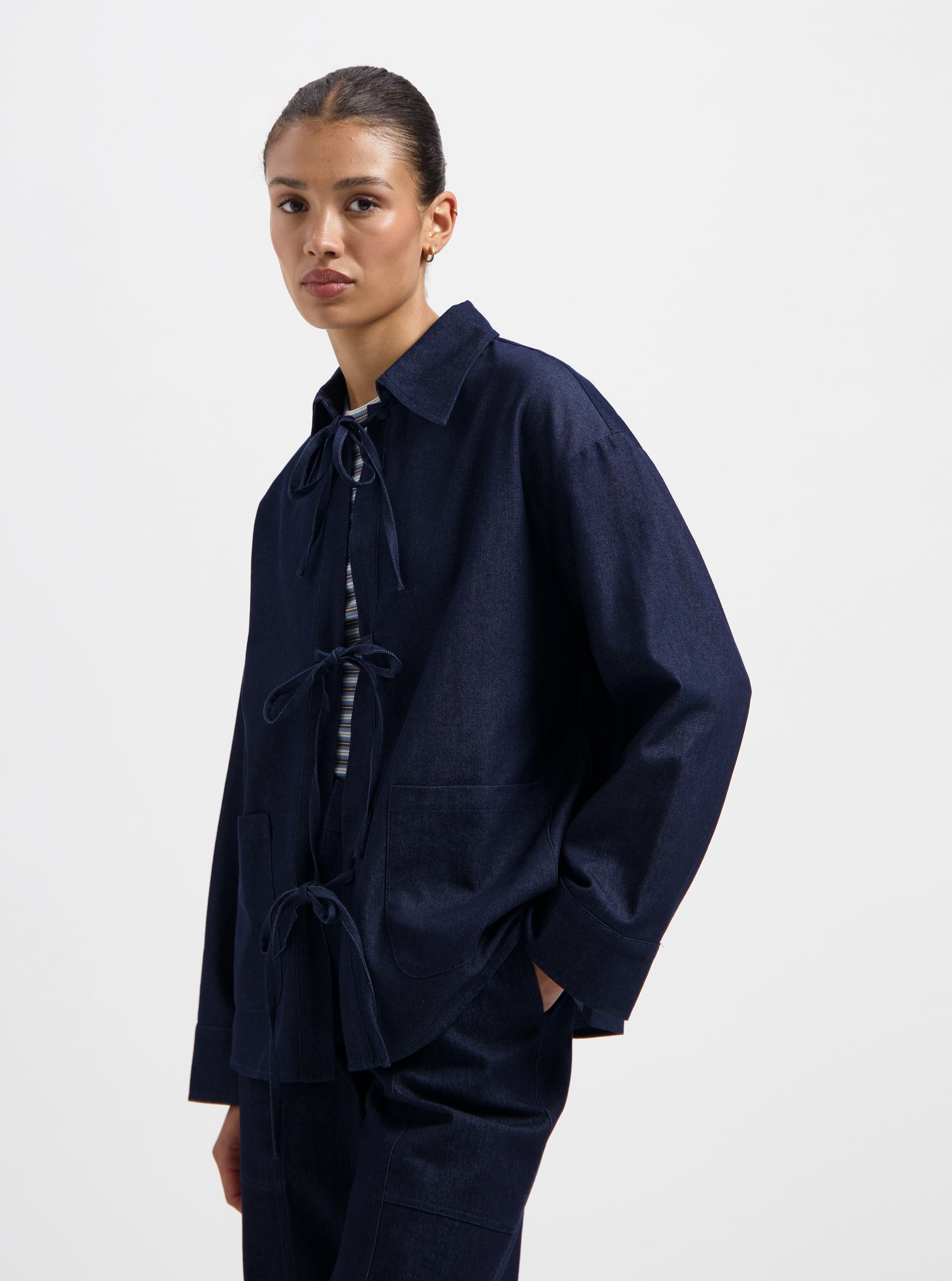 Material: 85% Cotton, 15% Polyester. Due to the nature of indigo-dyed denim, colour transfer may occur, especially when worn with light-coloured garments. Avoid contact with light fabrics before washing