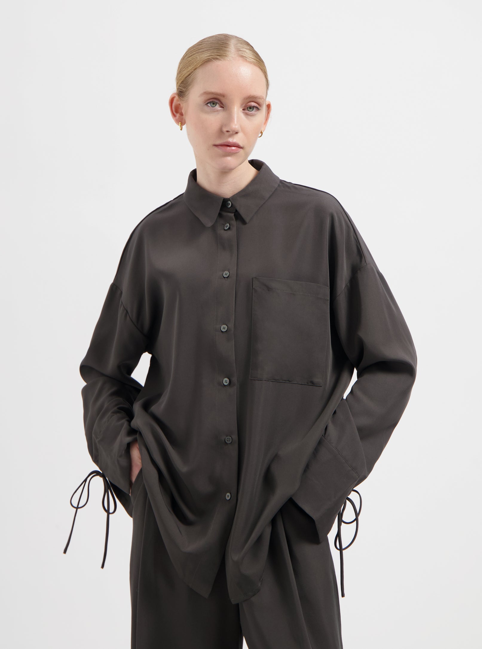 Lucie Tencel Tie Blouse - Brown
