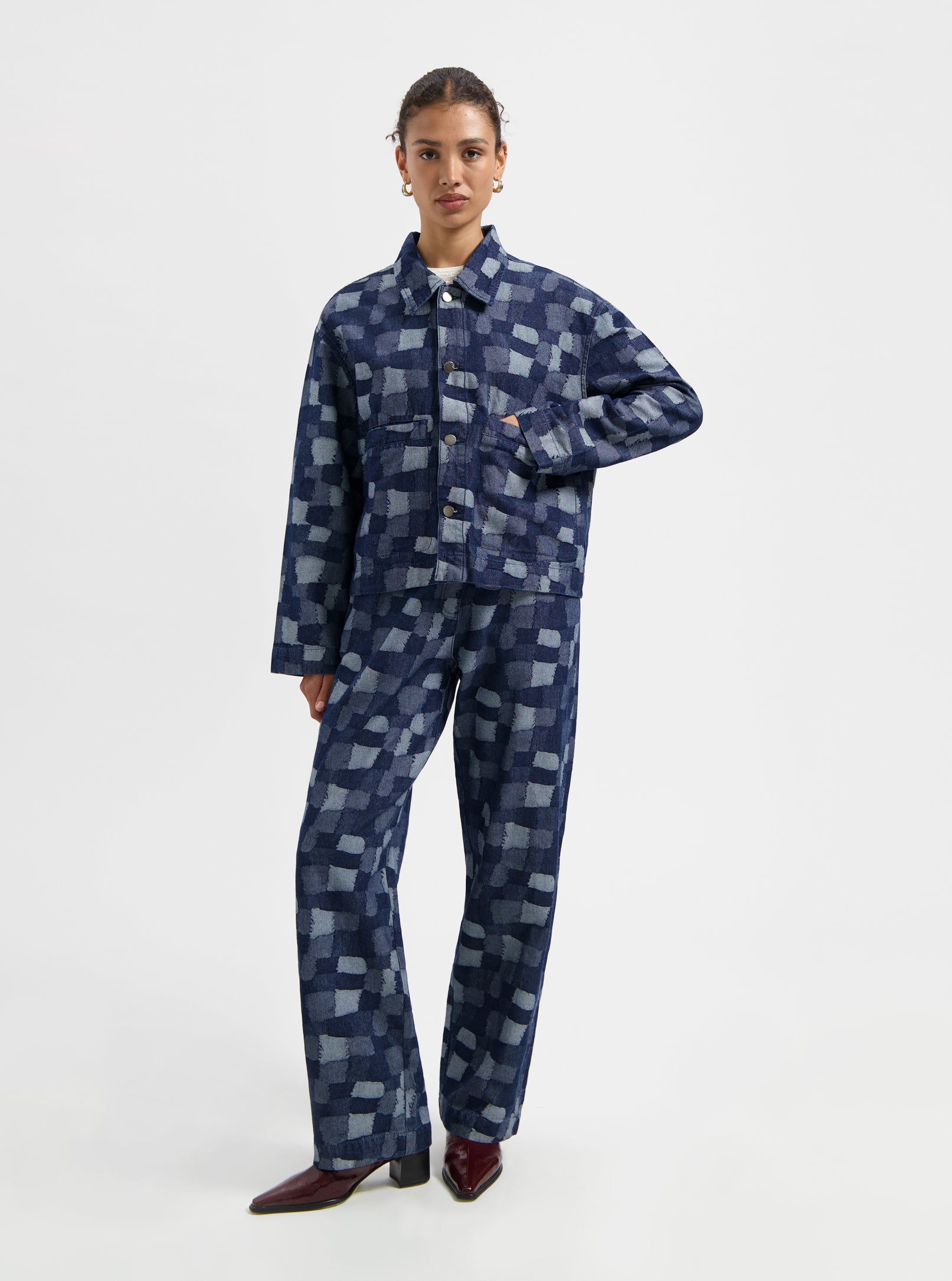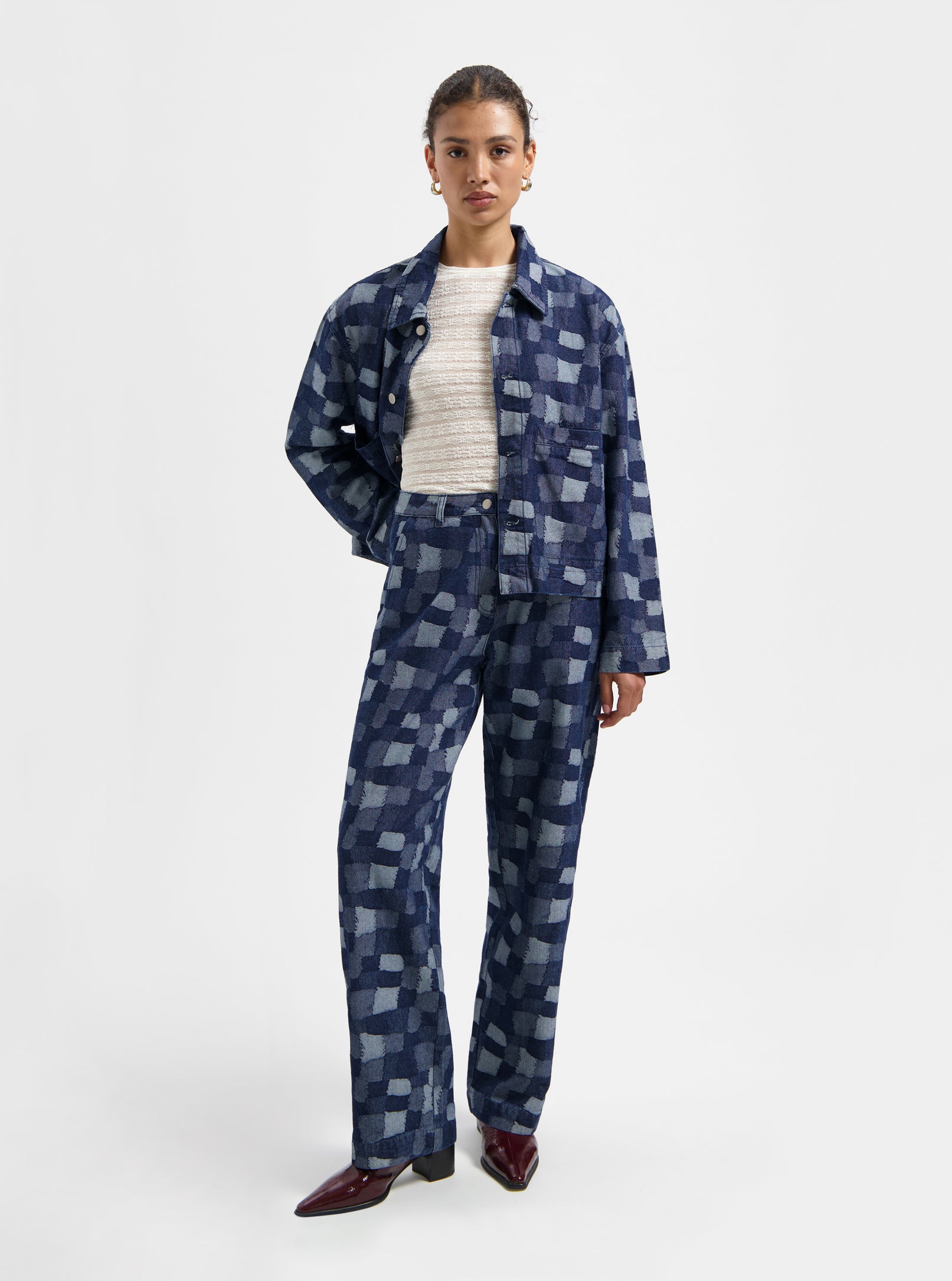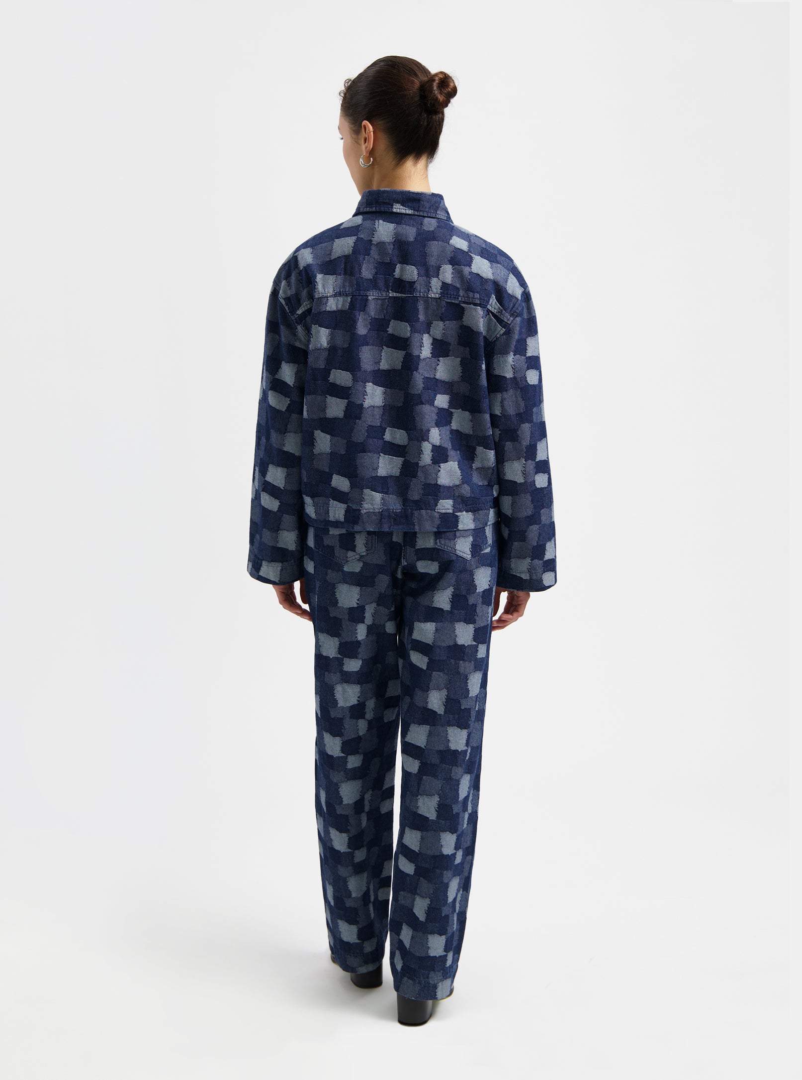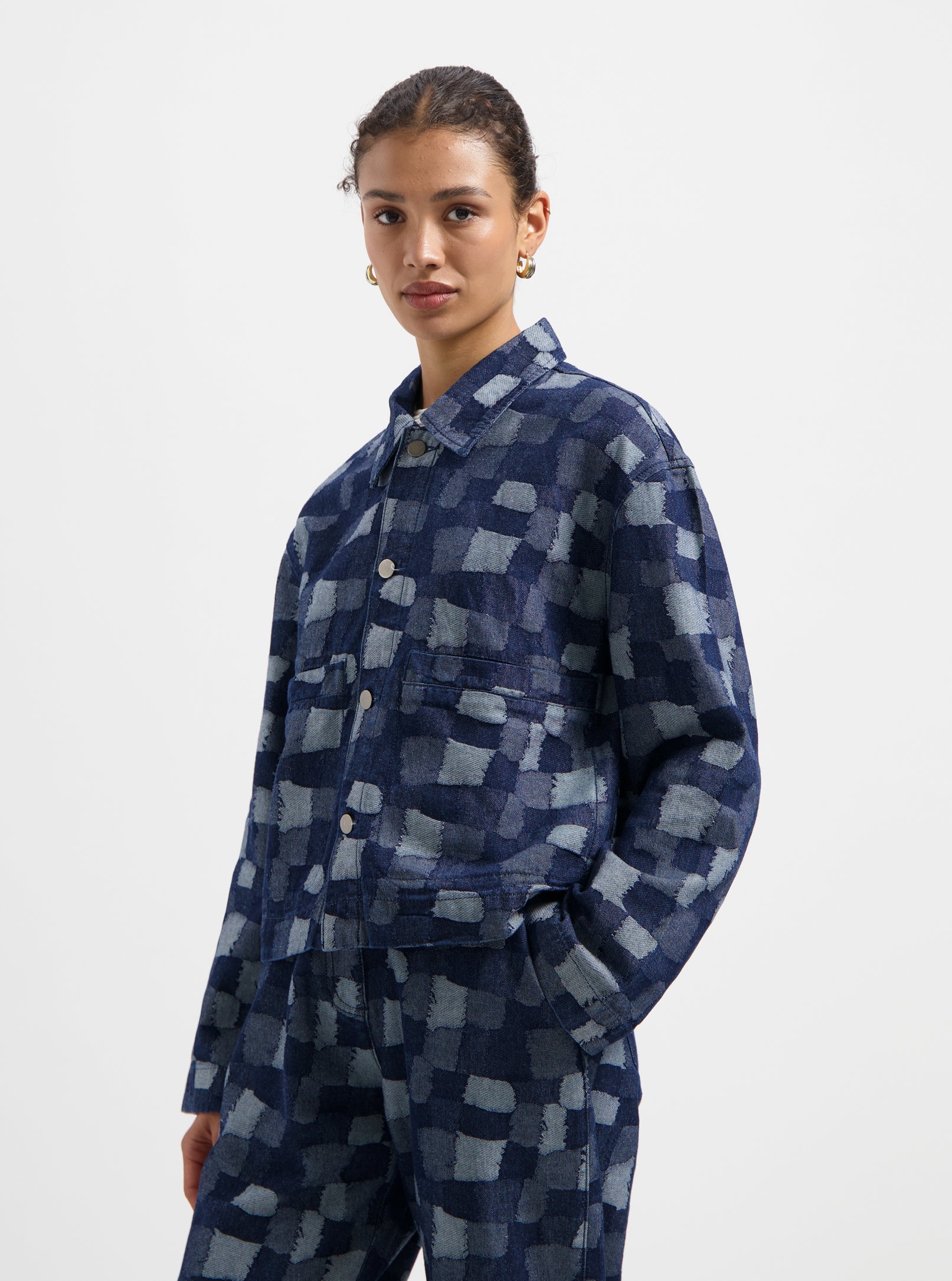 Patchwork denim jacket with a classic fit and unique details for a standout, casual look. Wear in set with Stevie Jeans.