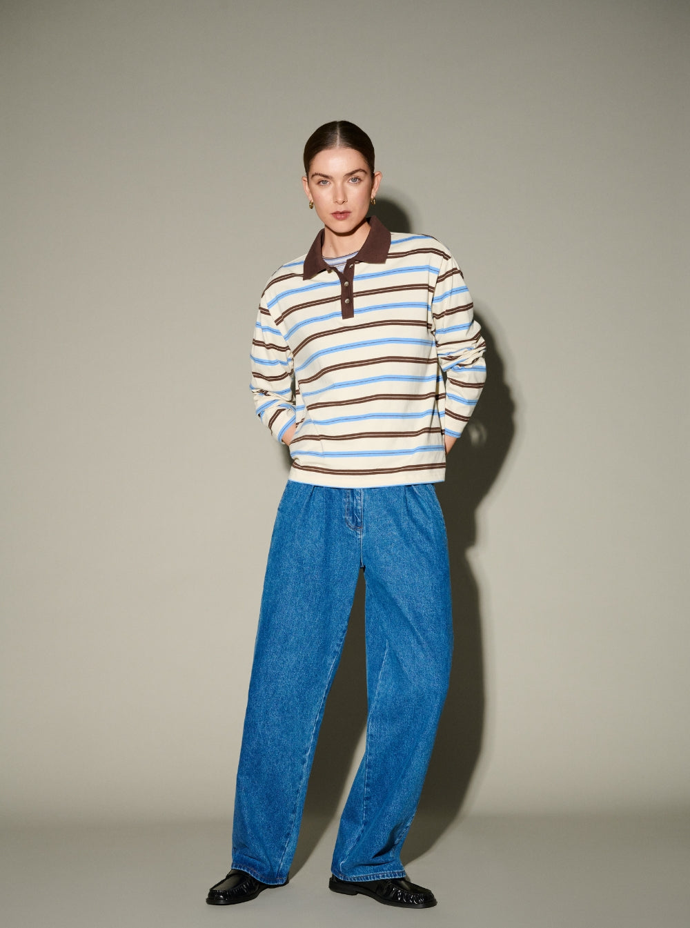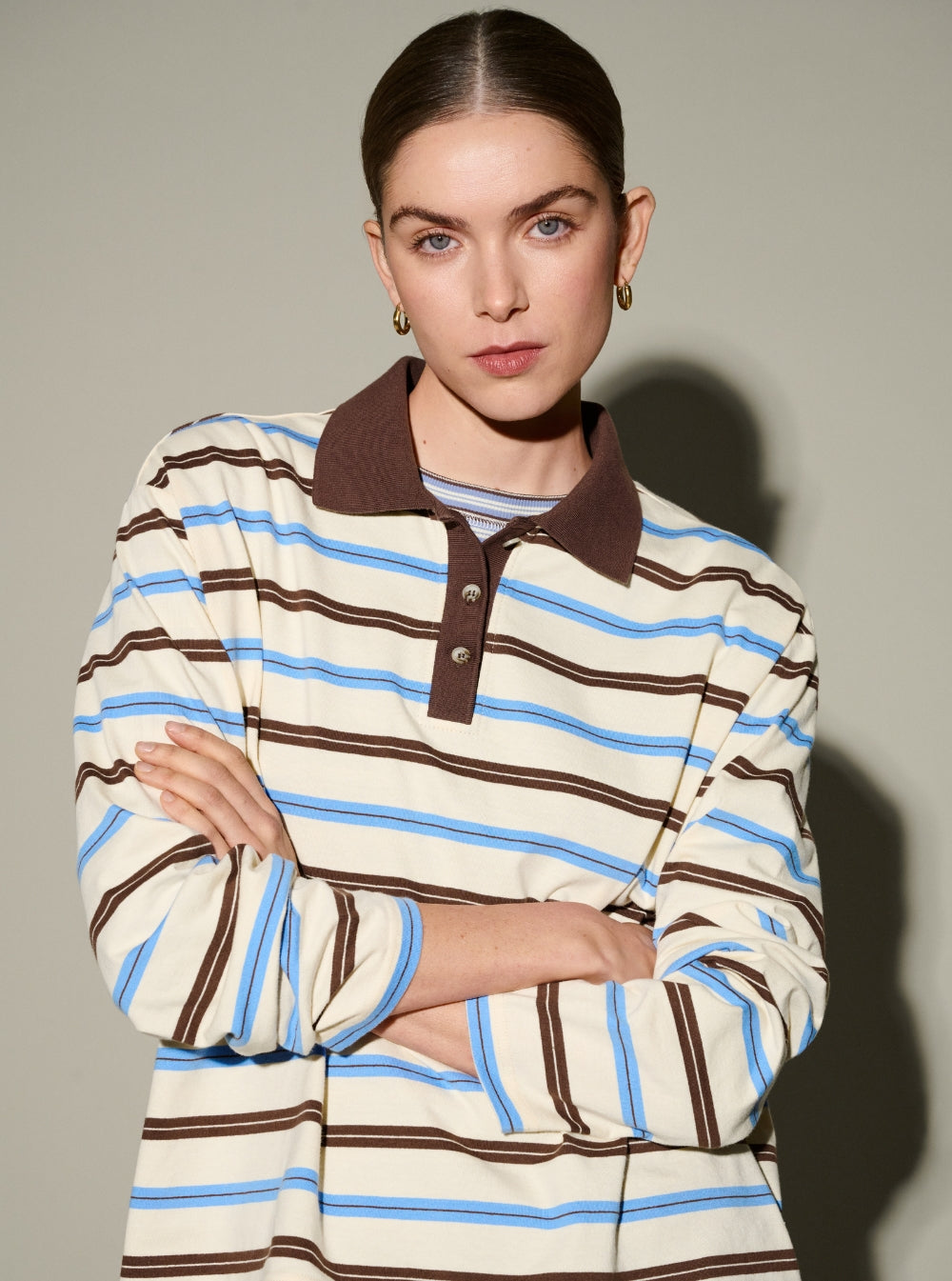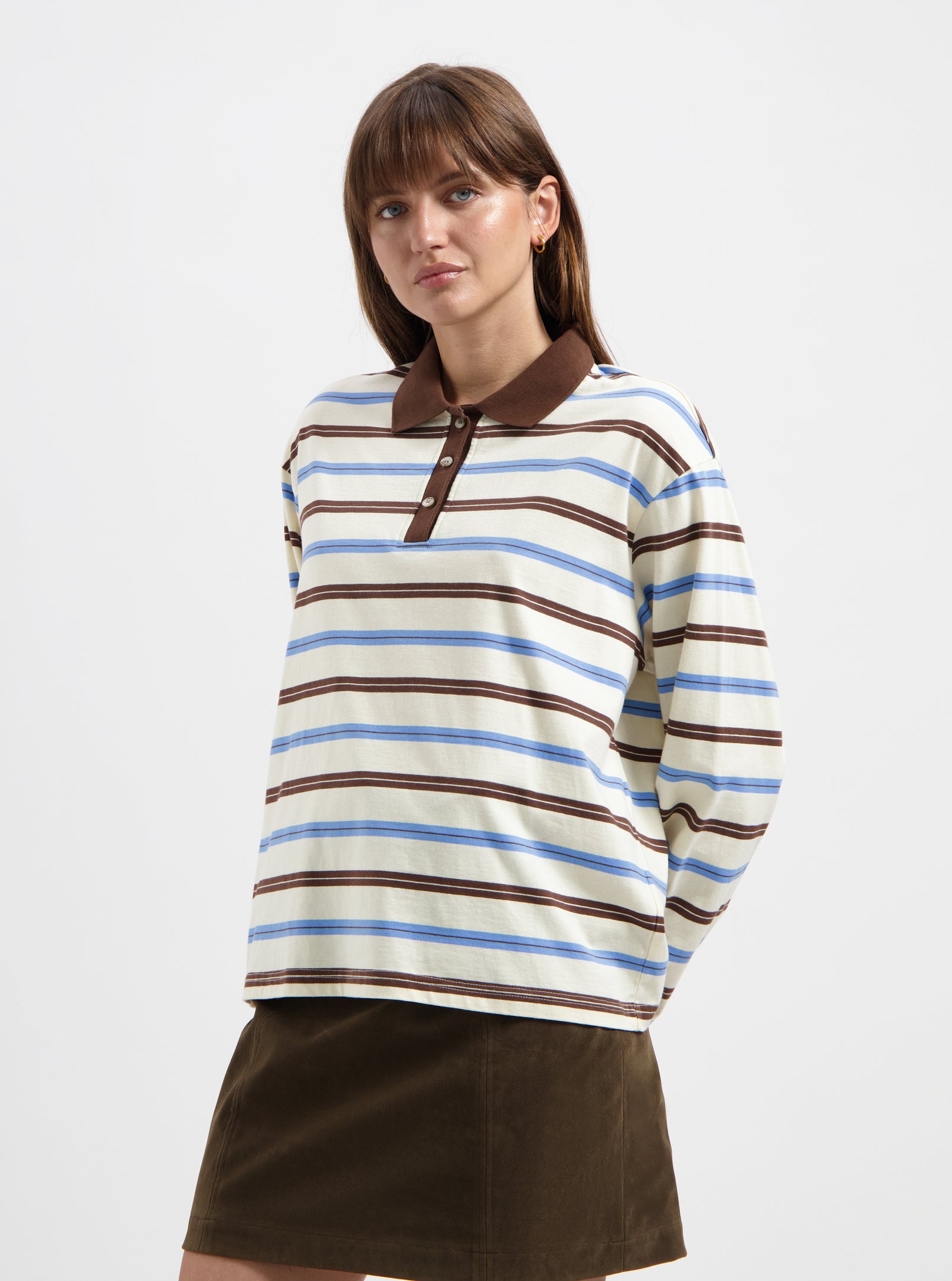 Freddie Striped LS Polo - Blue