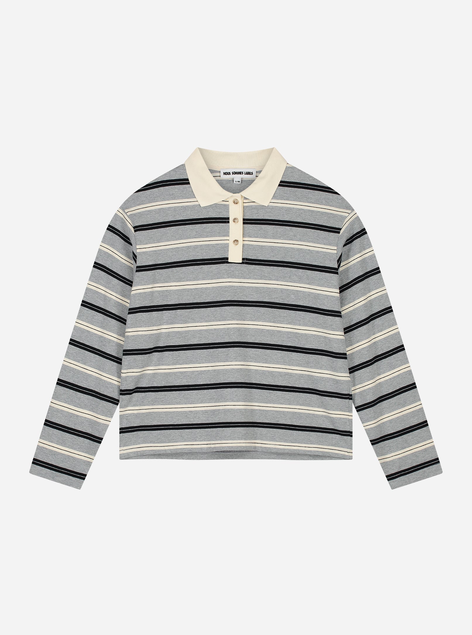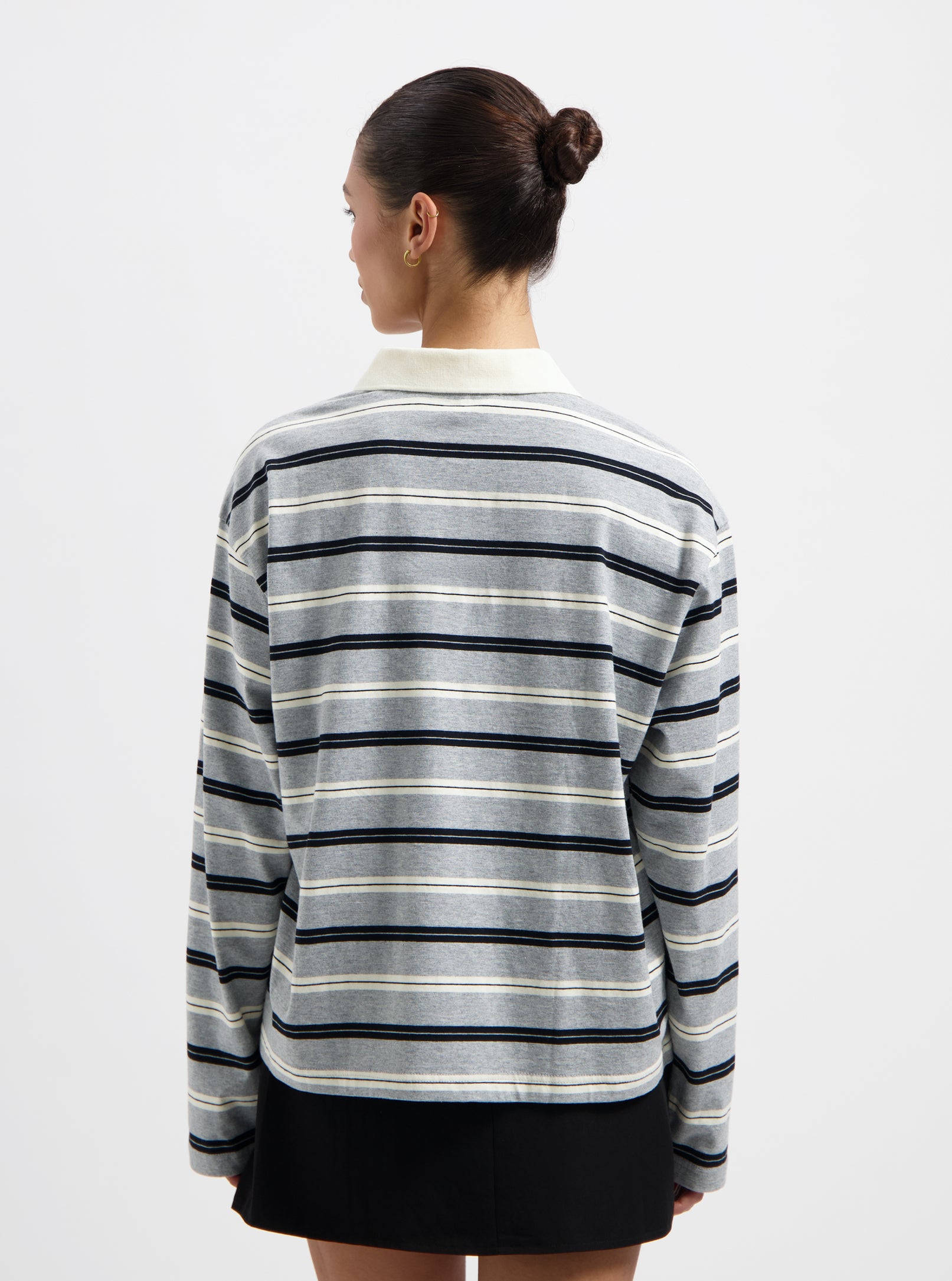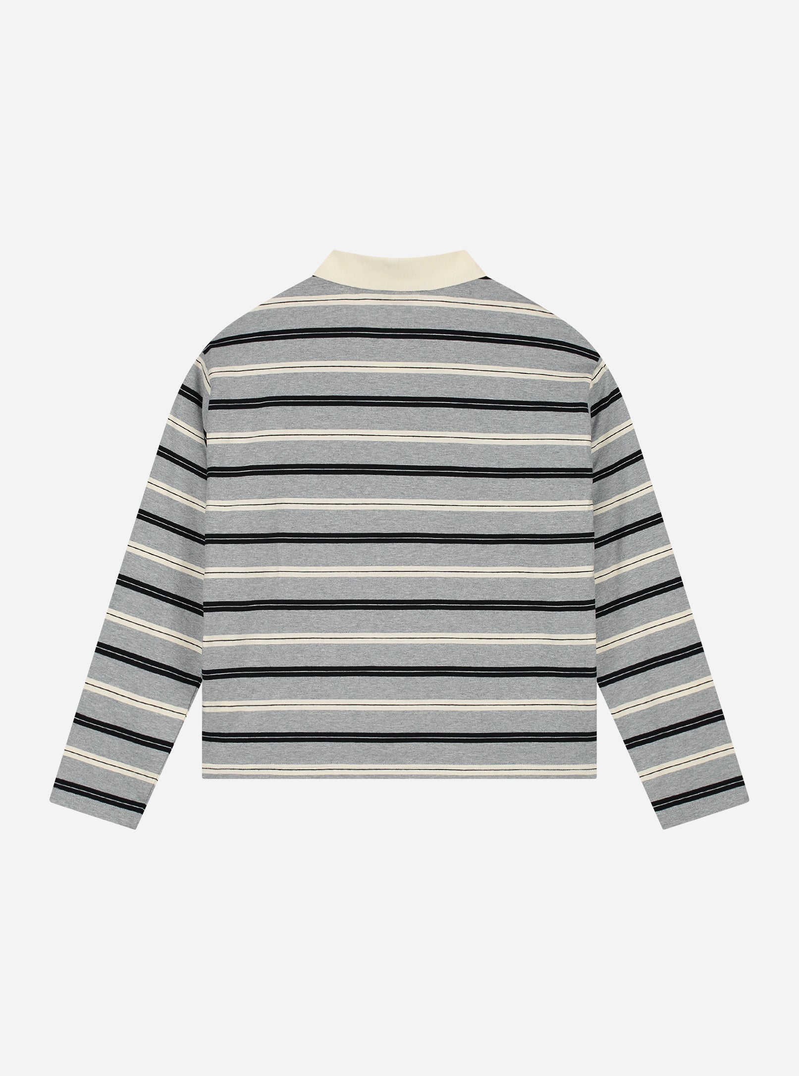 Freddie Striped LS Polo - Grey